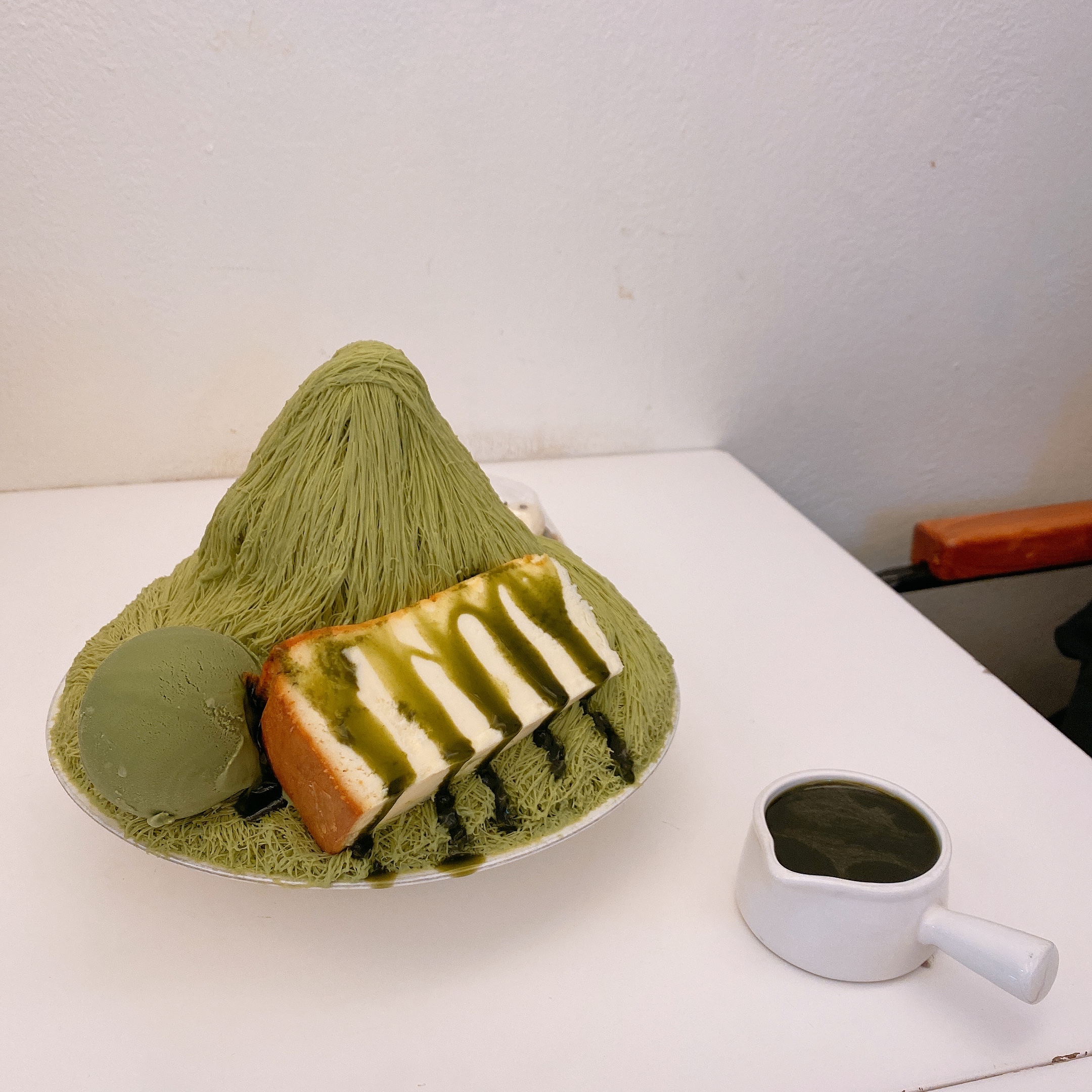 저희는 제주 녹차 오름 치즈 케이크 빙수를 주문했어요!!