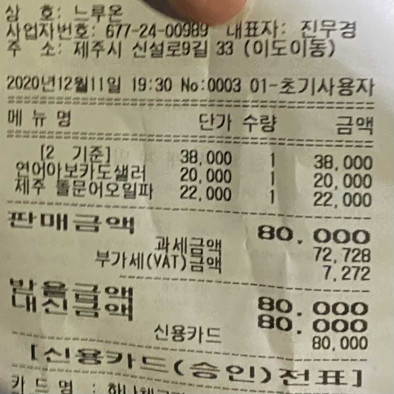 이렇게 세 가지 메뉴를 주문해서 80,000원이 나왔어요.
