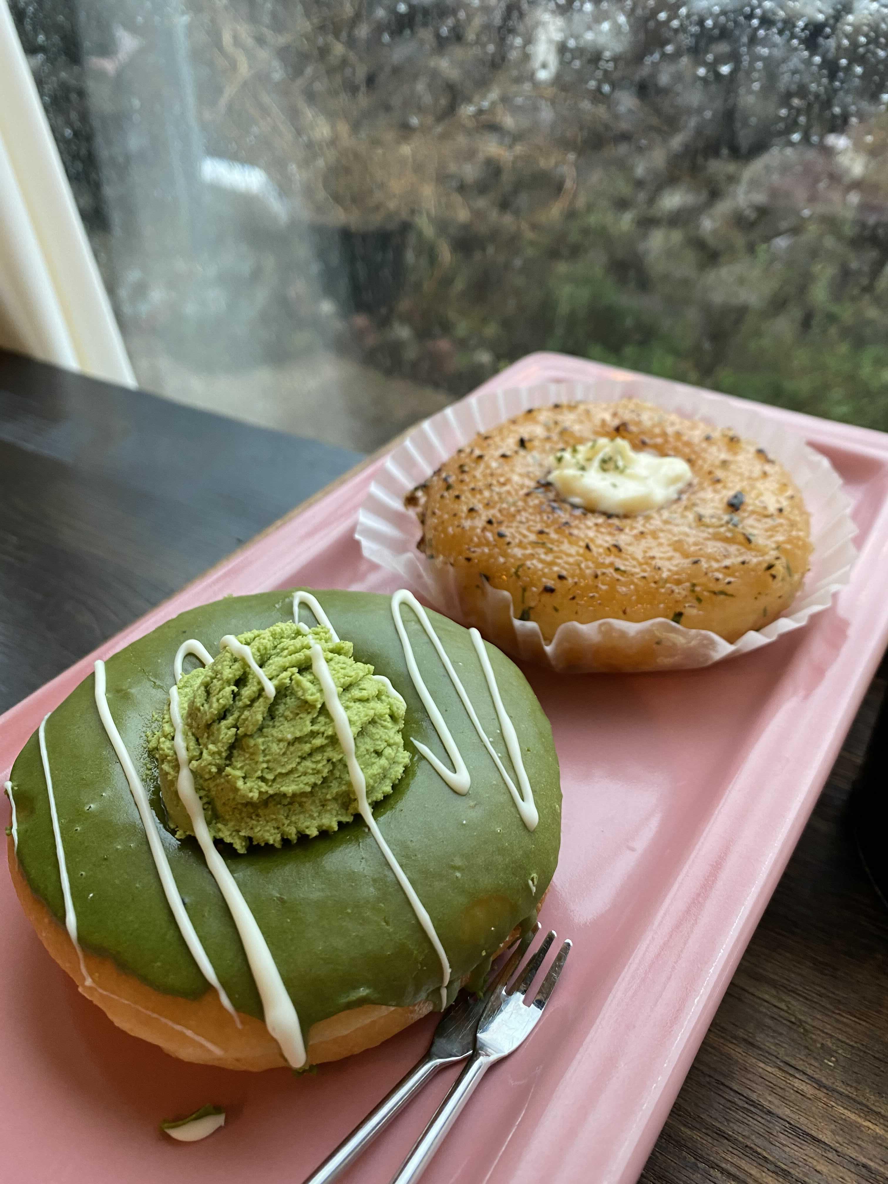 맛있었던 대정마농크림치즈 도넛 이랑 서귀 녹차숲 도넛, 아메리카노 그리고 얼그레이 밀크티